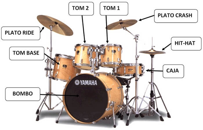 En la batería se pueden encontrar los platillos, que más adelante ampliaremos. La batería se puede afinar mediante una llave de afinación y un sistema de capachos o lugs, además de pernos de afinación que pueden tensar los parches, entre más tensos los parches mas agudos será el sonido y viceversa.