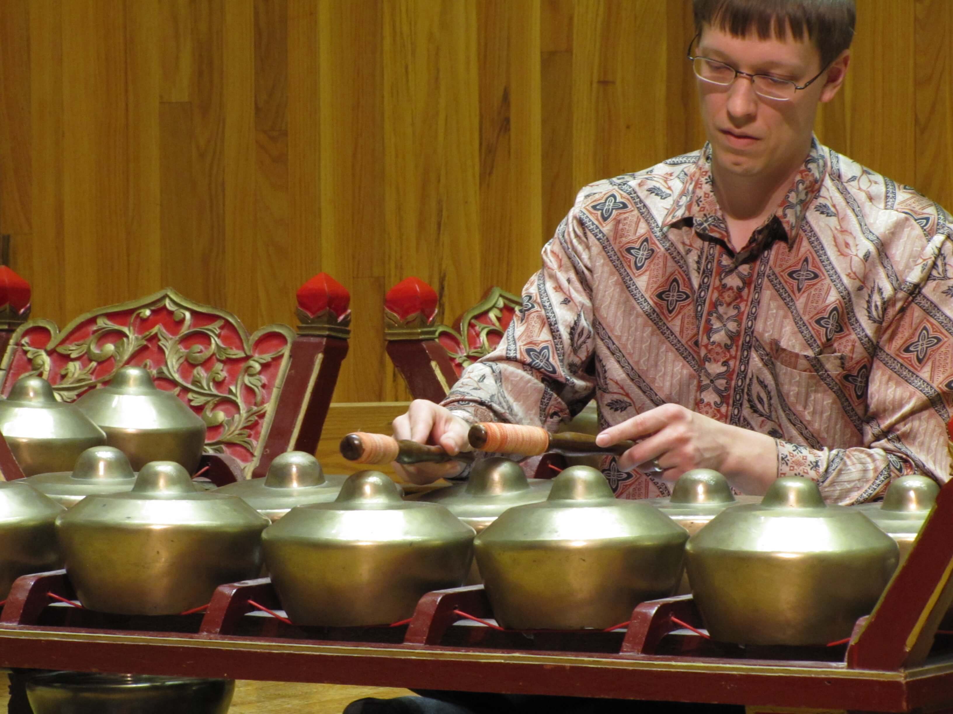 El bonang es un instrumento musical indonesio utilizado en el gamelan javanés. Es una colección de pequeños gongs (a veces llamados "teteras" o "ollas") colocados horizontalmente sobre cuerdas en un marco de madera (rancak), ya sea de una o dos filas de ancho. Todos los hervidores tienen un jefe central, pero a su alrededor los de tono más bajo tienen una cabeza aplanada, mientras que los más altos tienen un arco.